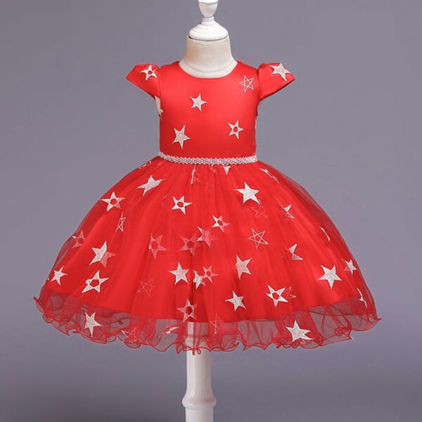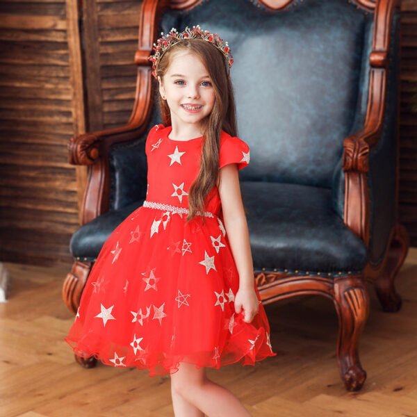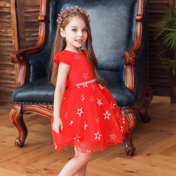 Be the first to review “Red Cap Sleeves Star Printed Party Dress”